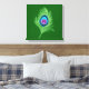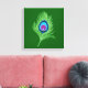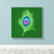 Lime and Blue Peacock Feather on Emerald Green Canvas Print