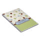 Personalise this smaller size notebook printed with a doodled heart pattern in sassy lime, blue and chocolate colour tones with a name and other text. Cute school notes or journal design for tweens. Created in part with graphics by Zaza at www.scrapandtubes.com.