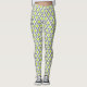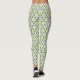 Colourful leggings featuring a geometric pattern in 3 colours: lime green, grey and white.