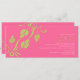 This classy and chic wedding invitation features lime green coloured floral leaves against a hot pink background. Fully customisable text allows you to customise for any occasion from weddings to bridal showers and wedding showers! RSVP information area on invitation means there is no need for additional RSVP cards!