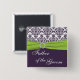 This lime green and purple damask with faux ribbon and jewels Father of the Groom button matches the wedding invitation show below. The text is customisable and so is the shape and size of the button. If you need anything changed, please email niteowlstudio@gmail.com.