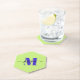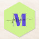 Personalised monogram coasters with lime and purple colour duo. Features first name and last initial in flowy script over bold serif typography. Accent your decor with custom coasters!