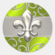 Lime and Silver Filigree Swirls Fleur de Lis Classic Round Sticker