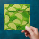 Lime slices and leaves. Seamless pattern. Custom background colour. Custom text.