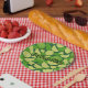 Lime slices and leaves. Seamless pattern. Custom background colour. Custom text.