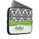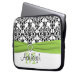 This personalised white, black and lime green damask laptop sleeve with a FAUX ribbon and jewel brooch has text boxes for you to customise with your own name, monograms, business name, or other text. If you need any help customising, please email niteowlstudio@gmail.com.