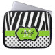 This chic and trendy personalised lime green, black, and white zebra stripes and polka dots laptop sleeve has text boxes for you to add your name and monogram. ****PLEASE email me if you want a LARGER size one made up, as selecting it on your own will cause the design and text boxes to slip. If you need help customising this with your own info, please email niteowlstudio@gmail.com for help.