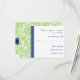 Wedding RSVP cards in elegant and contemporary bright apple green, dark navy blue, and white classic and chic floral vintage damask pattern. Customisable with your wedding details, available in many matching wedding products.
