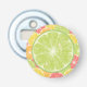 Bottle opener features a large slice of a lime over a collage of lemons, limes, oranges and grapefruit slices. A fun addition to your summer home decor or give as a gift.