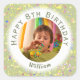 Lime Cream Customisable Birthday Photo Watercolor Square Sticker