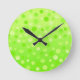 Cute design inspired by fizzy soda pop featuring spots in shades of lime green on a two-tone background. Wall clock with a customisable design for you to personalise with your own text, pictures and ideas. Other style options available. Printed image created using digital techniques by Jess perry.