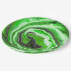 Lime Green and Black Marble like Swirls Fluid Art Paper Plate