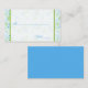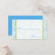 This bright blue and lime green floral place card matches the invitation and other items shown below.