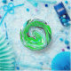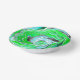Blue, green, black and white swirl patterns pour painting cells birthday plates.