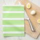 Lime green and white five stripes pattern tea towel