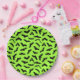 These paper plates feature a cute and spooky pattern of flying black bats with yellow eyes on a lime green coloured background, the perfect addition to your Halloween party!