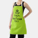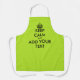 Lime green bib apron with custom funny keep calm text. Make your own keep calm and carry on kitchen or BBQ apron for men and women. Vintage typography template with crown silhouette. Personalised cooking aprons in any colour. Trendy template with fun typography design. Add your own name or humourous quote. Create your own funny Birthday party gift for barista, mum, dad, sister, brother, father, mother, wife, husband, friend, grandma, grandpa, kids, boss, co worker, chef, cook, colleague, wedding couple etc. Available in small, medium and large size. Also great for dinner party, baking, dish washing, art & crafts work, bistro work etc. Make a his and hers for him and her. Humour presents for friends and family. Bright neon colour design.