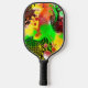Modern pour painting effect lime green, yellow, brown and black abstract art pickleball paddle.