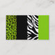Lime Green & Black Animal Print Zebra and Leopard Business Card
