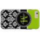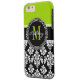 Lime Green Black Damask Pattern Monogrammed Case-Mate iPhone Case