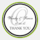 Lime Green Black Monogram O Wedding Thank You Classic Round Sticker
