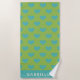 Lime Green Blue Cute Heart Pattern Personalised Beach Towel