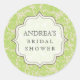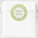The sticker is made on wonderful paper and had no problem sticking to the bag that I purchased to put it on. I wanted to find a design that would be cute for the bride and groom and this one fit the bill as it has cute "bees" buzzing around and the wedding was taking place in a town called "Bee Cave". The packaging was great and protected the stickers. The website is easy to navigate and there are so many color choices. I had no problem finding a color that the bride was using on everything else selected. The design was adorable and there were many to choose from. You can make the figure as larger or smaller and you can place the photo and writting whereever you want to in the sticker. The printing is fabulous..better than expected.