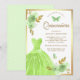 Lime Green Floral Dress Butterfly Gold Quinceanera Invitation