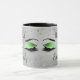 This stunning Lime Green Glitter Eyes Monogram Mug features a Silver Queen's Crown and a pair of eye lids with Lime Green glitter eyeshadow, diamanté effect liner with long black lashes on a silver glitter effect background. Personalize with the name of your choice in matching Lime Green. Designed by Jacqueline.