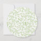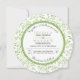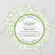 Lime green leaves pattern round wedding invitation. The focus of this lovely wedding invite is a floral pattern made of leaves in green and a white frame with scalloped green outline that holds your wording.