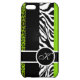 Lime Green Leopard and Zebra Animal Print Monogram iPhone Case