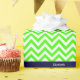 Lime Green and White Large Chevron Zig Zag Pattern, Navy Blue Ribbon Name Monogram Label