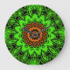 Lime Green Orange Black Lace Doily Mandala Snowfla Large Clock