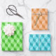 LIME GREEN PEACH AQUA BLUE GEOMETRIC CUBE PATTERNS WRAPPING PAPER SHEET