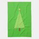 A simplified modern take on a classic Christmas tree motif towel, lime green polka dots on a deeper lime green background
