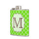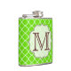 Lime Green Quarterfoil Lattice Quarter Foil Monogram Initial Personalised Custom Fabric Pattern Whiskey Flask