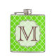 Lime Green Quarterfoil Monogram Whiskey Flask