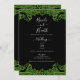 Lime Green Sparkle Glitter Lace Black Wedding Invitation