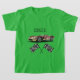On this fun t shirt is a sporty race car on a green backdrop with chequered race flags below and on the top an area where you can personalise it with a name to make it uniquely your own.
