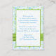 This flowery lime green, aqua blue, and white enclosure reception card with FAUX ribbon and flower brooch matches the Bat Mitzvah invitation shown below. If you require any other matching items, please email your request to niteowlstudio@gmail.com.