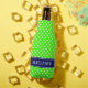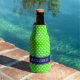 Lime Green White Polka Dots Navy Name Monogram Bottle Cooler