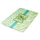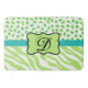 Add style to your bath, kitchen or other room with this rug mat personalised with your monogram initial. This trendy and colourful lime green and white with turquoise zebra and leopard print pattern will make a colourful and stylish accent to your home decorating. A lime green and black emblem on a turquoise blue strip adds a pop of colour and creates a personalisation area for your monogram. Colourful zebra stripes and leopard or cheetah skins for graphic design is one of the hottest art and design trends, and is extremely popular from fashion to home decor. This rug is fully customisable. Go wild with these skin designs!