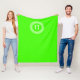 Lime Green Wt Greek Key Rnd Frame Initial Monogram Fleece Blanket