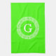 Lime Green Wt Greek Key Rnd Frame Initial Monogram Tea Towel