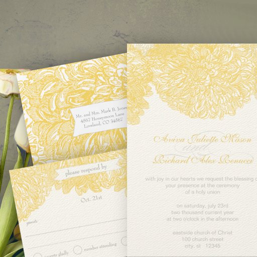 Lime Modern Floral Chrysanthemum Wedding Invitation