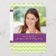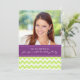 Custom Photo 20th Birthday party invitations in elegant and pretty chartreuse lime green, dark purple and white fun and modern chevron zigzags pattern. Add your name, photo, and party details for a unique and stylish 20th birthday party invitation.
