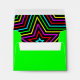 Bright rainbow stars kaleidoscopic design inside a lime green envelope to match.