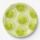 A pattern of fresh & juicy lime slices in bright, vivid shades of lime green, with a watercolour texture to give it that freshly cut look. They are placed on a light yellow / green background for a bright & summery look.