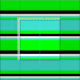 This design features a pattern of stripes with colours like lime, turquoise, beige, and black.