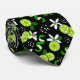 Stylish tie patterned with citrus lime fruit slices, lime peel and white flowers on black